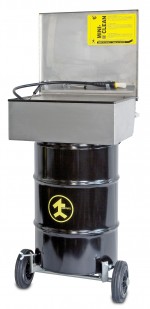 - Fahrbares Kleinteilewaschgerät mit den Vorteilen einer stationären Anlage. Einsatz in Garagen, Service- und Reparaturwerkstätten mit Fahrwagen. Betrieb mit 50 Liter-Fass, Ausführung mit Waschrost und Tauchwanne, Deckel verschliessbar, Fahrwagen mit Bremslenkrollen.